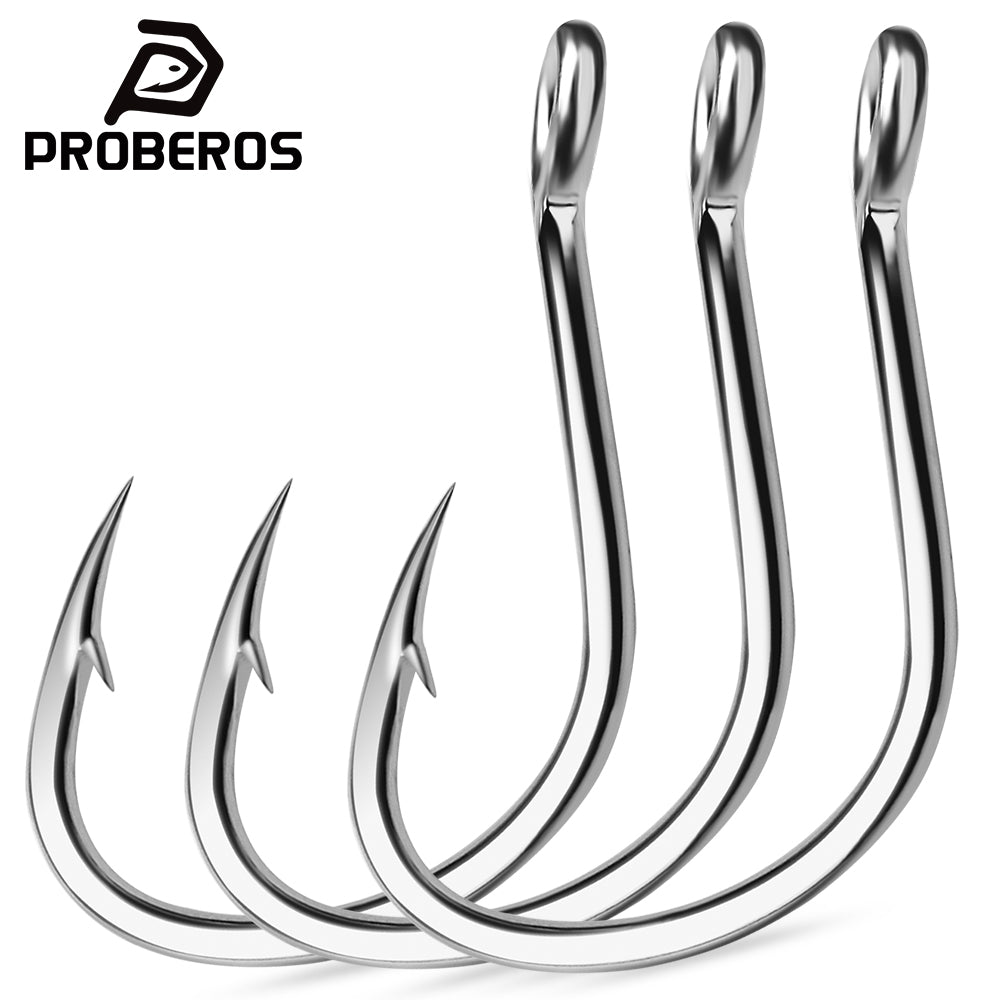 PROBEROS 20PCS Saltwater Fishing Hooks 1/0#-5/0# Anti-rusty Single hook Tin Color Fishhooks High Carbon Steel Strength
