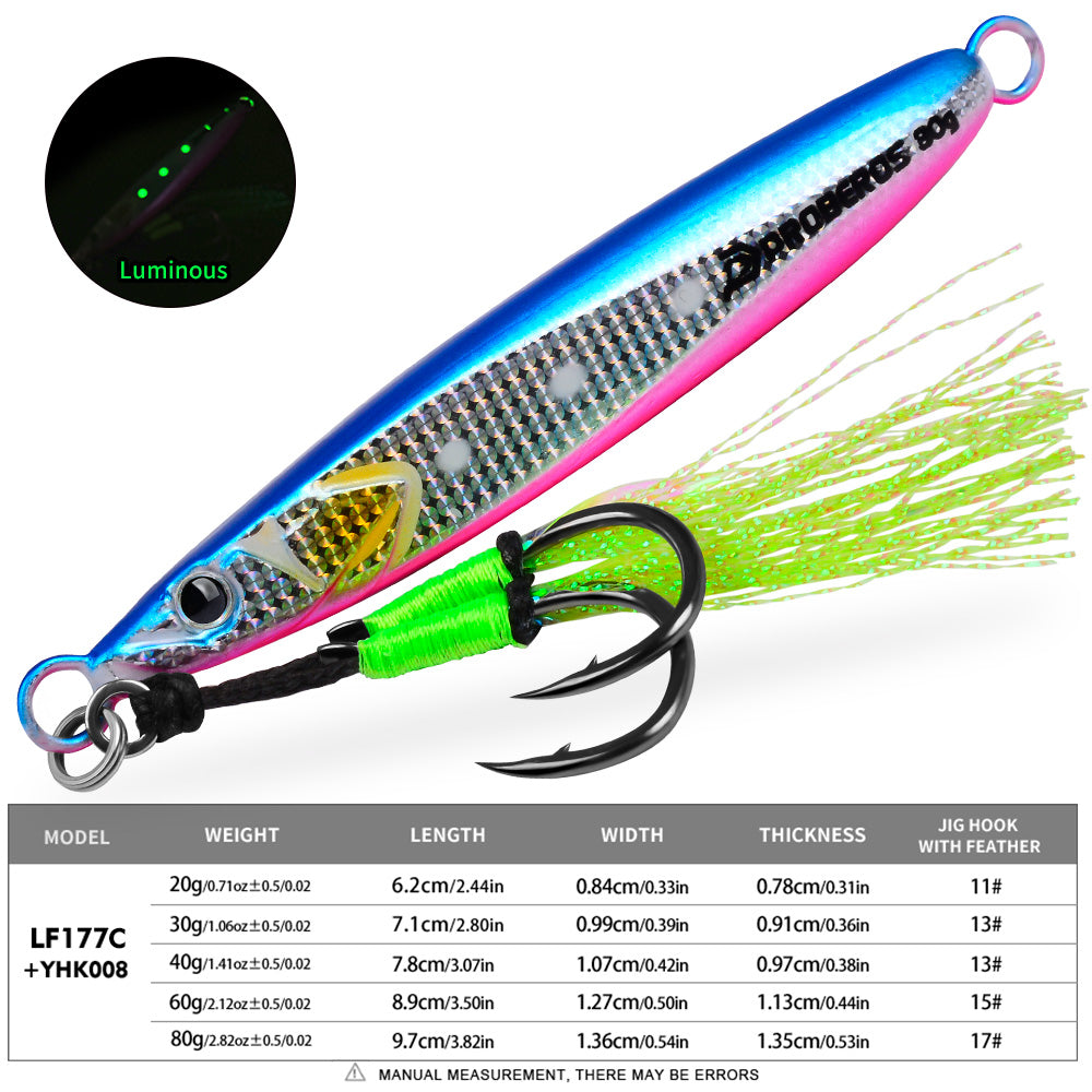 PROBEROS Lead Slow Jigging Lure with/without Hook 3D Eye Saltwater Fishing Bait 20g-80g (1PC Pack)